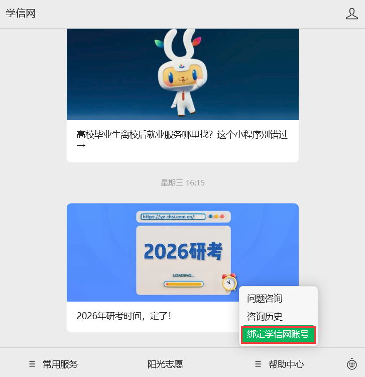 注:已有學(xué)信網(wǎng)賬號(hào)的用戶可直接綁定,沒有學(xué)信網(wǎng)賬號(hào)的用戶,需要先注冊(cè),然后再綁定。
