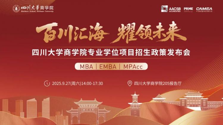 四川大學商學院專業(yè)學位項目招生政策發(fā)布會(MBA/EMBA/MPAcc)邀您參加,共啟商學新程!